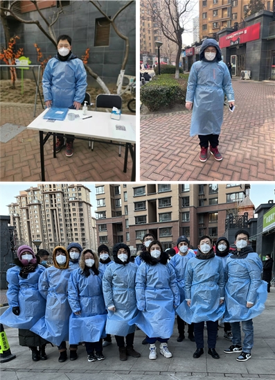 家住滨海新区和韵社区的机械机电党支部党员丁彦玉同志,在安顿好实验室在校研究生后,即刻响应社区居委会号召,投身到社区大筛组织志愿活动中。两次全员筛查,敲遍了小区所有住户的门,第一次筛查更是连续忙碌了近12小时,只为不落下任何一户居民。寒冬腊月的凌冽寒风让丁彦玉对此次志愿者活动感慨颇深:我们拥有政府的及时响应,拥有社区的有序组织,拥有医务人员的坚强守护,还有着更多社区工作者的默默奉献,这就是天津“硬刚”奥密克戎最强、最大的底气!固若金汤,津城必胜!