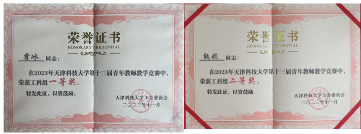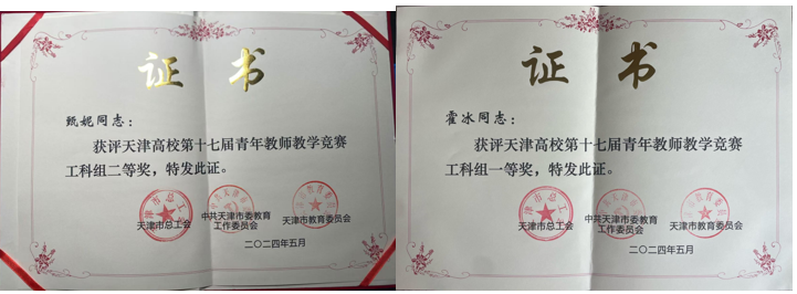 教师积极参加教学基本功竞赛、教学创新设计大赛,获得天津市、校级一等奖。