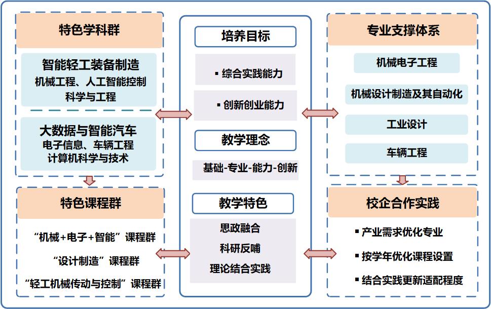 公司依托智能轻工装备制造、大数据与智能汽车学科群,已入选天津市高校服务产业特色学科群;主要涉及专业,如机械电子工程、工业设计、机械设计制造及其自动化等,在持续推进“基础-专业-能力-创新”理念的基础上,建有“机械+电子+智能”交叉课程群、“设计制造”课程群和“轻工机械传动与控制”课程群,真正做到以教师解决国家重大需求工程问题的科研经历反哺教学,结合理论课程和实践环节,着重培养员工的综合实践能力和创新能力。同时按照产业需求导向的专业与课程设置,按学年为周期,优化学科体系与课程体系,有效推动授课内容的更新与适配。