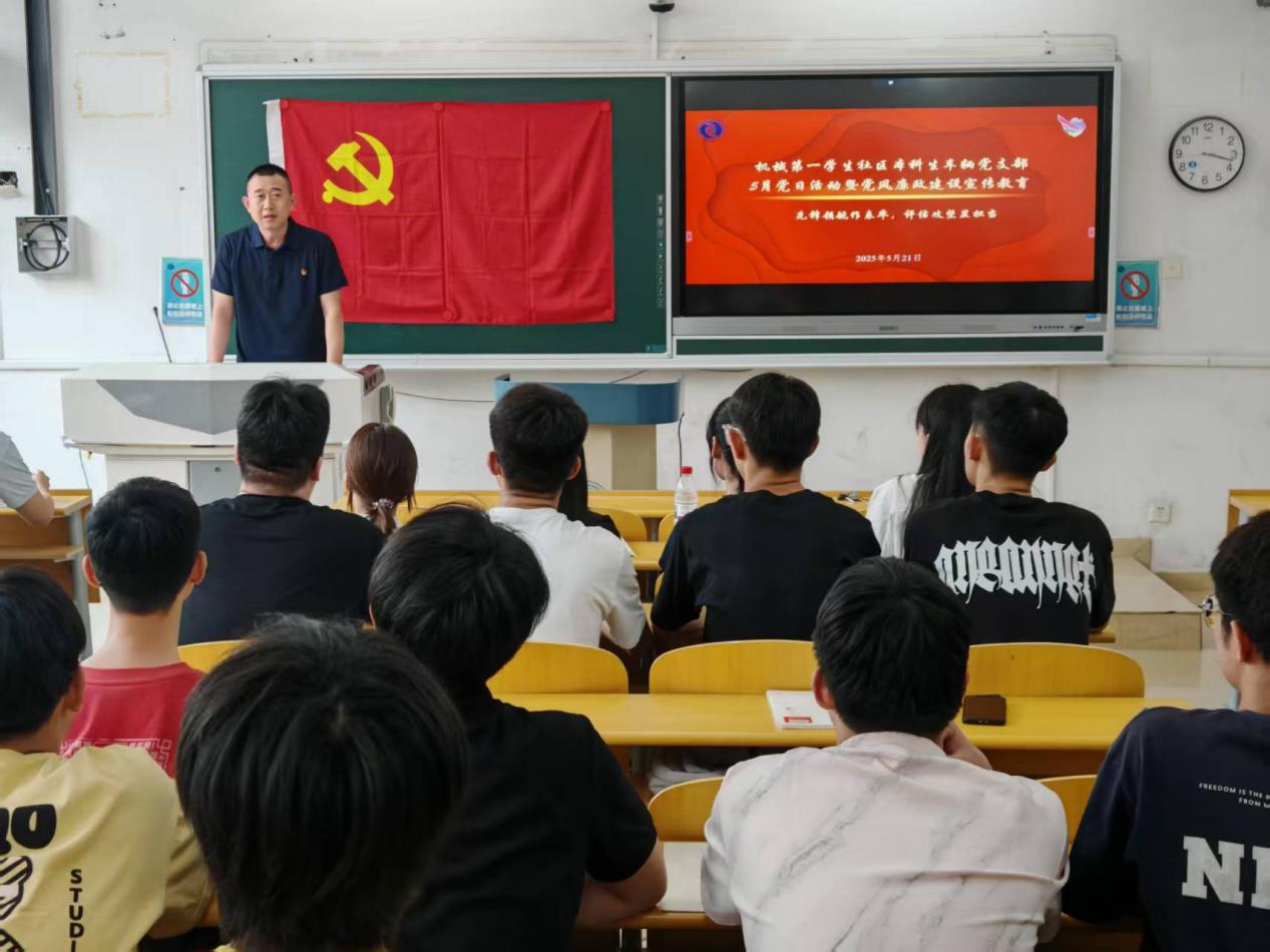 为深入学习贯彻习近平总书记关于加强党的作风建设的重要论述和中央八项规定精神,推动实施“先锋计划”及高效有序迎接本科公司产品评估工作,提升党员的政治理论水平,深化作风建设成效,强化责任担当意识,2025年5月21日,机械第一员工社区本科生车辆党支部召开5月党日活动暨党风廉政建设宣传教育和《习近平关于加强党的作风建设论述摘编》第4-6专题学习研讨,支部全体党员、入党积极分子和发展对象代表共计55人参加会议。