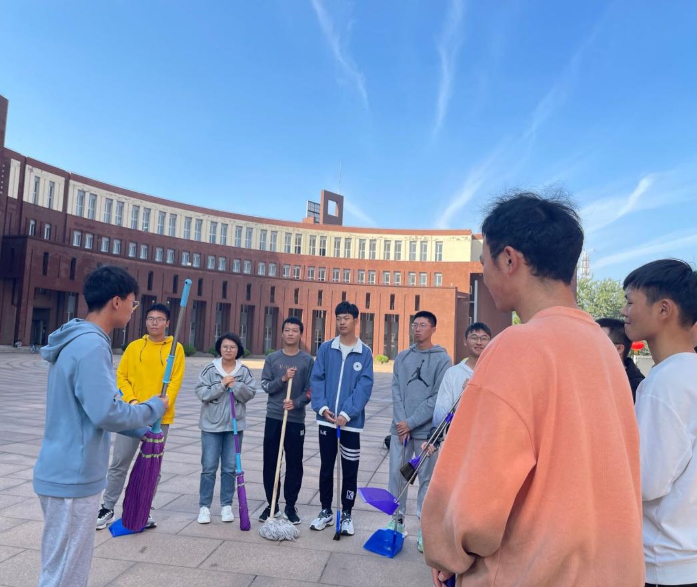 2021年10月8日,义务劳动活动在河西校区主楼A区开幕,第一周从机械一班开始实施。14时钟声敲响,第一小组集合完毕,由机械一班班委带领全体同学举行义务劳动开幕仪式,各班委详细讲述了劳动的益处与意义,并为第一组同学对各类工具进行分析讲解,同学们认真听取班委的发言,随后各位班委带领大家前往了劳动场所。